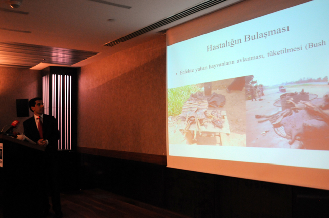 Sağlık Bakanlığı Hudut ve Sahiller Sağlık Genel Müdürlüğü Atatürk Havalimanı Baştabipliği, Bakanlığın ebola ve MERS hastalıkları konusunda Türkiye’nin tüm uluslar arası giriş kapılarında yapılmasını istediği sunum yaptı. Hudut ve Sahiller Sağlık Genel Müdürlüğü Atatürk Havalimanı Baştabibi Aykut Yener Kavak, hem sağlık hem de havalimanında görev yapan tüm özel ve kamu kurum yöneticilerine yönelik hastalık nasıl bulaşır, korunma yöntemleri neler, ebola ve MERS belirtileri taşıyan yolculara ilk müdahale nasıl yapılır gibi konularda bilgi verdi.