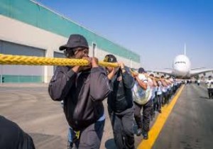 56 polis Dünyanın en büyük yolcu uçağı A380’i 100 metre çekerek Guinness Rekorlar Kitabı’na adlarını yazdırdı