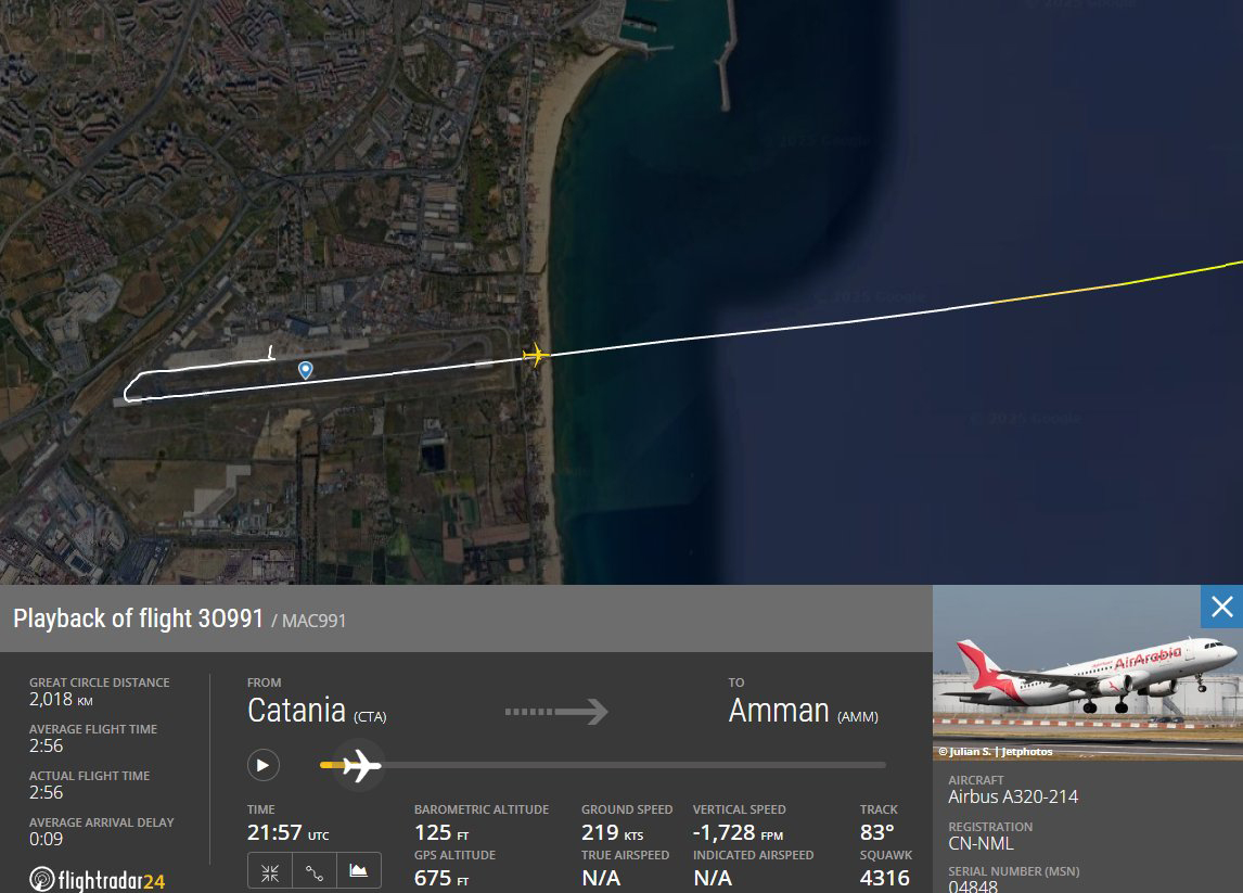İtalya Sivil Havacılık Otoritesi’nin başlattığı soruşturmanın ardından Air Arabia’ya ait CN-NML tescilli Airbus A320 tipi uçağında, 20 Eylül 2025 günü saat 21.57'de Catania Havalimanı’ndan kalkıştan kısa süre sonra bir GPWS (Yer Yakınlık Uyarı Sistemi) uyarısı olduğu ortaya çıktı. Uçağın ani irtifa kaybederek deniz yüzeyine çok yaklaştığı anda uyarı geldiği kaydedildi.