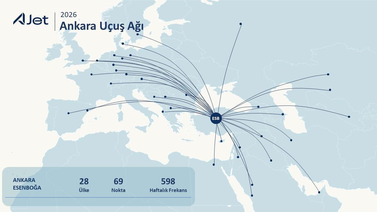 İki yıl gibi kısa bir sürede Avrupa’dan Orta Doğu’ya, Türk Cumhuriyetleri’nden Kuzey Afrika’ya uzanan geniş coğrafyada 18 ülkede 28 yeni hat açtı. İki yıl içerisinde toplam 42,5 milyon yolcuya hizmet verdi. 2026 yılı sonunda 25 milyon yolcu taşıma hedefiyle büyümesini sürdürüyor. Ağustos 2025’ten bu yana 8 aylık süreçte AJet filosuna fabrika çıkışlı 18 uçak dahil edildi. 2026 yılı içerisinde Boeing 737-8 MAX ve Airbus NEO tipi toplam 46 yeni uçağı daha filosuna katılacak. Yıl sonu itibarıyla filonun yüzde 80’i yeni nesil uçaklardan oluşacak.