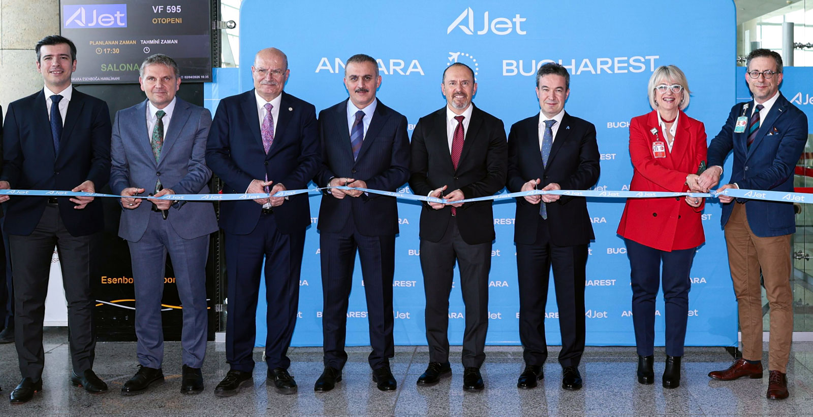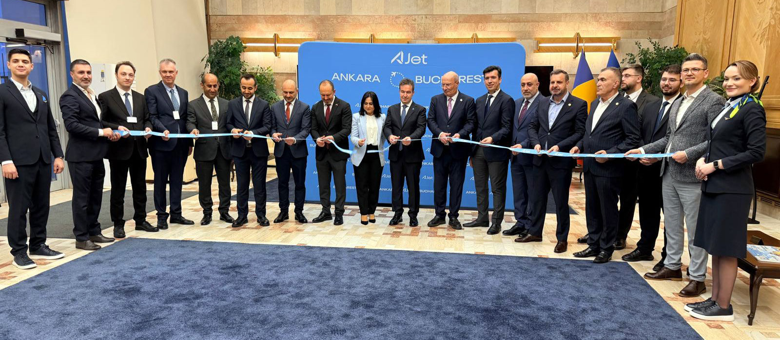 Bükreş’te Henri Coanda Uluslararası Havalimanı’nda yapılan törene Türkiye Cumhuriyeti Bükreş Büyükelçisi Özgür Kıvanç Altan, AJet Genel Müdürü Kerem Sarp, Ankara Ticaret Odası Başkanı Gürsel Baran, AJet ve havalimanı üst yönetimi katıldı.