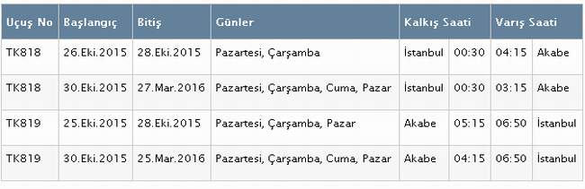 Dünyada en çok ülkeye uçan ve son 5 yıldır ‘Avrupa’nın En İyi Havayolu Şirketi’ seçilen THY Ürdün’ün başkenti Amman’dan sonra bu ülkede ikinci uçuş noktası olan Akabe’ye frekans arttırıyor. İki yıl önce haftada 3 frekans olarak başlatılan İstanbul – Akabe – İstanbul seferleri, 25 Ekim 2015 tarihinden sonra haftada 4 frekans olarak gerçekleştirilecek.