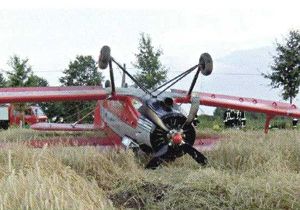Almanya’nın Branderıburg Eyaleti ne bağlı Bienenfarm kasabasından havalanan çift kanatlı küçük uçağın pilotu kalkıştan kısa süre sonra uçakta arıza olduğunu anladı. Hemen geri dönen pilot kalkış yaptığı havalimanına inmeyi başardı. Geri dönen uçak inişe geçtiği sırada ters döndü ve 5 kişi yaralandı.