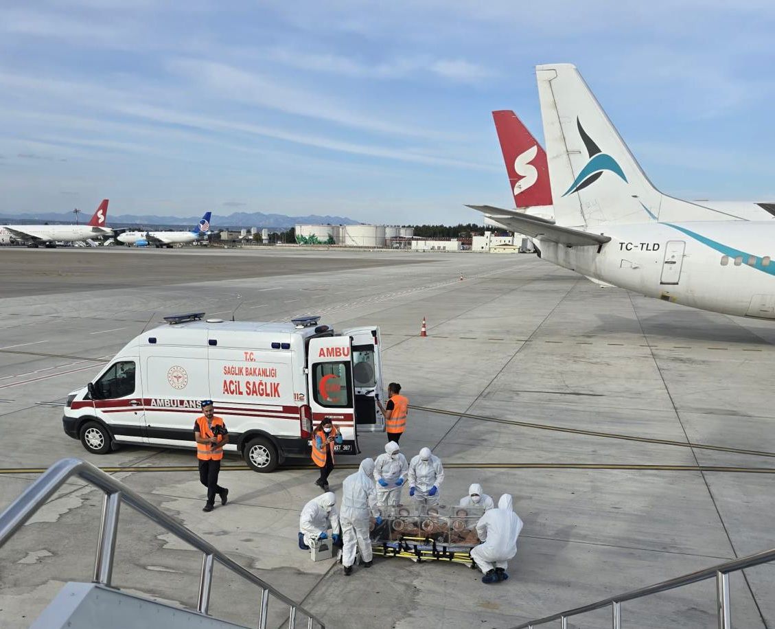 Bu bilgi üzerine Havalimanı Halk Sağlığı Acil Durum Planı (HSADP) derhal aktif hale getirildi. Şüpheli hasta, uçaktan apronda izole edilerek tam donanımlı 112 bulaşıcı hastalık ambulansı ile referans hastane olan Antalya Eğitim ve Araştırma Hastanesi’ne nakledildi. Tüm süreç, gerçek bir salgın senaryosunda olduğu gibi titizlikle uygulandı.