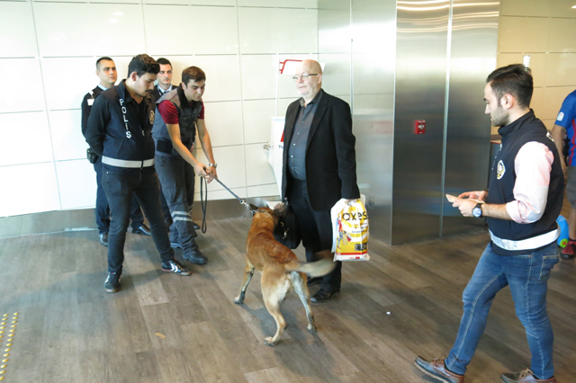 Türk Hava Yolları’nın TK 1887 sefer sayılı uçağıyla Viyana’ya gidecek olan Avusturyalı yolcular uçağa binişten önceki son kontrol noktasında köpeklerle arandı. Polis, şüpheli gördüğü yolcuların pasaportundaki fotoğrafla kendilerini eşleştirdi, ayrıca dedektör köpeklerle üzerlerini ve çantalarını aradı.
