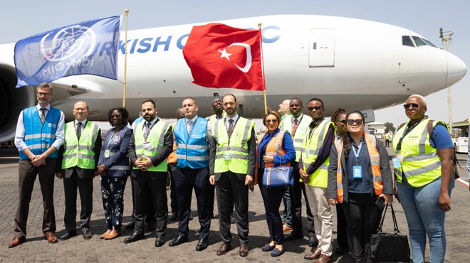 "Nairobi’de toplanan yardımların ülkemize ulaştırması için planlanan uçuşların ilki; TK6631 kodlu sefer sayılı, B777F geniş gövde kargo uçağımız ile Adana İncirlik Üssü’ne gerçekleştirilmiştir. Bu seferimizde 85 ton çadır ve çadır ekipmanları, 15 ton battaniye olmak üzere toplam 100 ton yardım malzemesi taşınmıştır. Bu uçuşun ardından planlanan ilave iki sefer ile çadır, tünel çadır ve muhtelif yardım malzemeleri deprem bölgesine sevk edilmiştir.