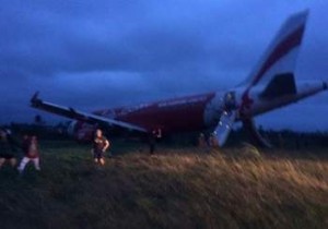 İki gündür kayıp olan Malezya merkezli AirAsia uçağının enkaz parçalarının bulunmasının ardından havayolu bir tehlike daha atlattı. Şirkete ait Airbus A320 tipi uçak, bugün Manila-Kalibo uçuşunun ardından pistten çıktı.