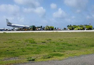Saint Martin Adası'na kargo taşıyan Swearingen SA-227 tipi uçağın burun iniş takımları açılmayınca pilotlar burun üzerine iniş yaptı.