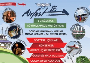 Festival kapsamında Hürkuş yüzde yüz Türk yapımı uçakla gösteri yapacak. Büyükçekmece Kültürpark’ta Türkiye Hava Trafik Kontrolörleri Derneği (TATCA) öncülüğünde gerçekleştirilecek olan Airfest 2015 ile ilgili bugün saat 17.30’da basın toplantısıyla festival hakkında detaylı bilgi verilecek. Airfest 2015 etkinliklerinde Halük Levent konser verecek, DJ Cengiz Ünsal da ziyaretçileri coşturacak. Girişin ücretsiz olacağı festivalde ayrıca sanal havacılık, paraşüt, helikopter, havacılık temalı yer gösterileri, üniversite ve kulüp etkinlikleri ile model uçak gösterileri düzenlenecek.