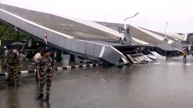 *Roof of Delhi Airport Terminal 1 comes crashing, crushes cab driver while in his car. 3 drivers in hospital. All flight… pic.twitter.com/92vgNJTF2t