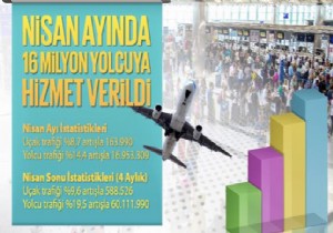 Nisan ayında yolcu sayısındaki artışa en önemli katkıyı İstanbul Atatürk, İstanbul Sabiha Gökçen, Ankara Esenboğa ve turizm merkezlerimizdeki havalimanları sağladı.