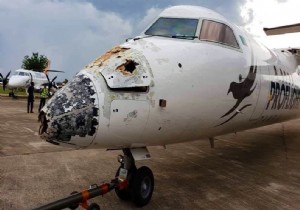 Zambia'da Lusaka’ya inişi sırasında dolu fırtınasıa yakalanan uçak ciddi hasar gördü
