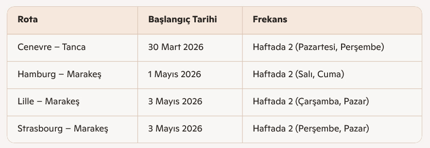 Bu yeni rotalarla birlikte EasyJet’in Fas’a toplam uçuş ağı 46’ya ulaşacak.