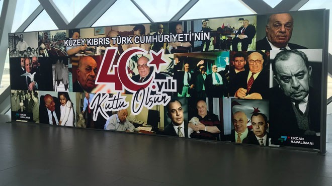 Giden yolcu bölümünde büyük bir Kuzey Kıbrıs haritası içerisine kurucu Cumhurbaşkanı Rauf Raif Denktaş ve toplum lideri Dr. Fazıl Küçük’ün resimlerinin olduğu maketler yerleştirildi, “Kuzey Kıbrıs Türk Cumhuriyeti’nin 40. Yılı kutlu olsun” mesajı yazıldı.