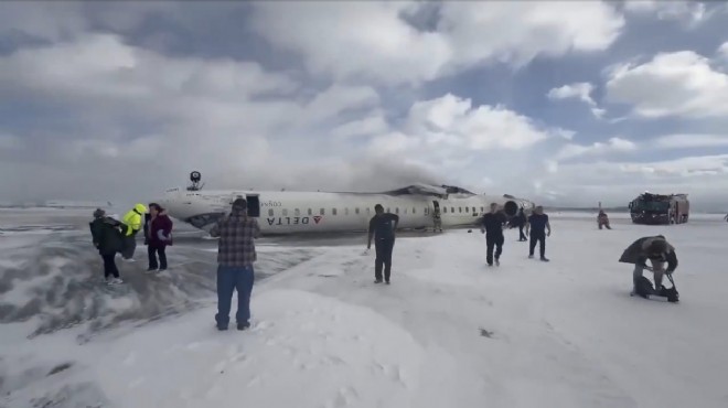 Zorlu kış koşullarının sürdüğü Kanada Toronto Pearson Havalimanı'nda Delta Air Lines'e ait Bombardier CRJ-900LR uçağı ters döndü. Kazada sekiz kişinin yaralandığı bildirildi.