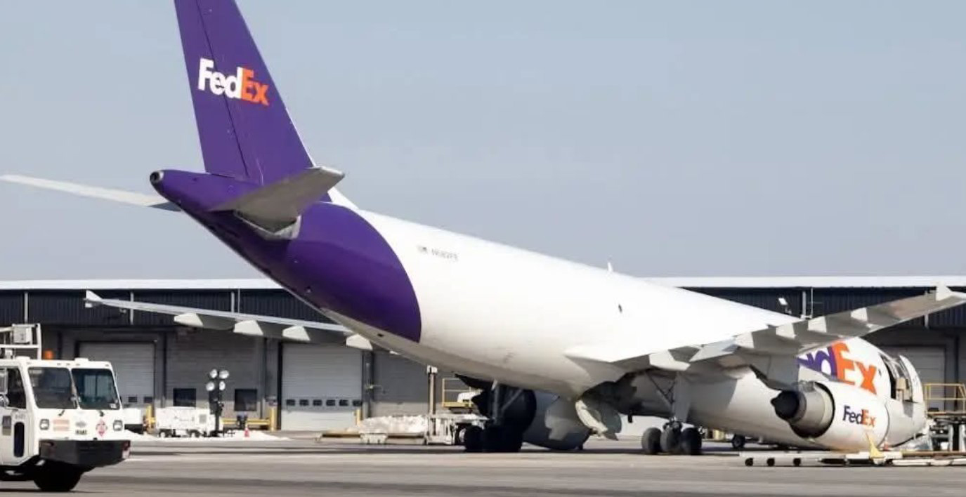 ABD'de uçuş sonrası rutin bakımda olan FedEx’e ait bir kargo uçağının burun iniş takımı çöktü