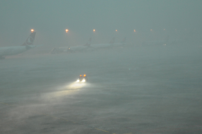 İstanbul'da günlerdir beklenen fırtına etkisini gösterdi. Uçuşlar aksadı. İşte Atatürk Havalimanı'ndan o anları gösteren fotoğraflar...