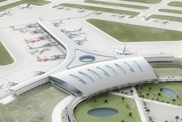 175.000 m2’lik Tahran Uluslararası Havalimanı T-2 projesi, mevcut terminal binasının özel olarak hac yolcularına tesis edilmesi ile yılda ortalama 26,5 milyon uluslararası ve yerli yolcuya hizmet etmesi amacıyla tasarlanmış. Operasyonel esneklik ve verimlilik, yüksek standartta yolcu konforu ve gelecekteki ihtiyaçlara adapte edilebilir olması GMW MIMARLIK’ın konsept tasarımının temel öğelerini oluşturuyor. Proje, yalın ve dinamik formu ve güçlü görsel kimliği ile uluslararası terminalin yolcular için ana alan, ticari alanlar ve lounge’lar olmak üzere 3 ana fonksiyonunu net bir şekilde ifade ediyor. İskeledeki mekanların doğrusal düzenlenmesi, toplam 28 kapının esnek bir şekilde kullanılmasını sağlıyor.