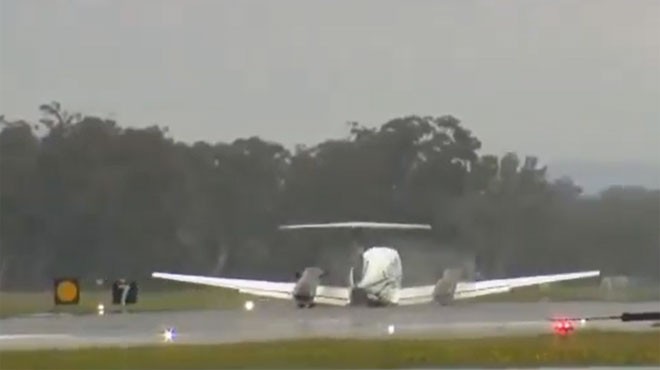 Avustralya'da iniş takımları açılmayan Beechcraft B13 Super King Air tipi uçağın pilotu, gövde üzeri iniş yaptı