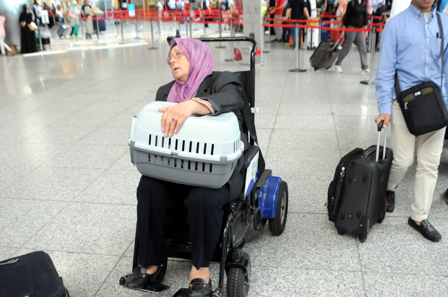 Metro katında tekerlekli sandalye talebinde bulunan ancak arabanın gelmesini beklemeden dış hatlar terminali gidiş katına çıkan Gündoğdu, THY kontuarları önündeki kiosklara takılıp yere düştü. Ayağı kioskların yerleştirildiği mermerin uzantısına takılan 66 yaşındaki kadın bir anda yere yığıldı. Acı içerisinde kıvranan talihsiz kadın yaklaşık 20 dakika böylece bekledi. Tekerlekli sandalye hizmeti veren Portclinic ekipleri olay yerine gelerek yerdeki Sevim teyzeyi ayağa kaldırdı ve tekerlekli sandalyeye yerleştirerek uçağına götürdü. Kafes içerisinde bulunan kedisi Boncuk ve yavrusu Pamuk’u bir an olsun elinden bırakmayan Sevim teyze, “Tekerlekli araba istedim ama gelmedi. Ben de yürüyerek buraya kadar geldim. Kalabalıkta mermeri fark etmedim ve düştüm. Biz yaşlılar güçlükle yürüyoruz. Görevlilerin bu mermeri keserek kısaltması lazım” diyerek dert yandı.