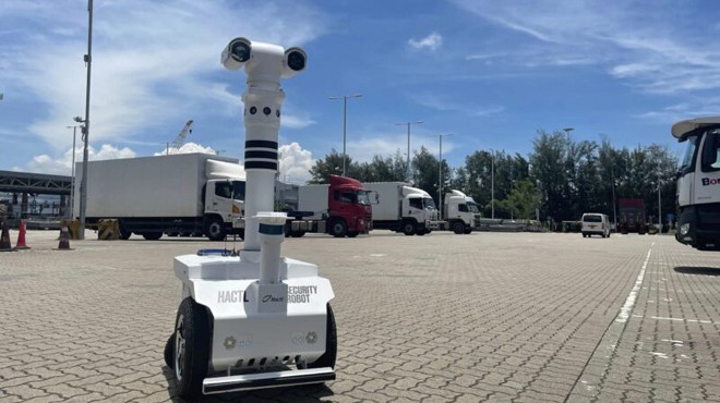 Yüksek çözünürlüklü kameralarla donatılan güvenlik robotu, binaları izlemek için mevcut CCTV sistemlerini desteklemek için araba ve kamyon park alanlarının yanı sıra ihracat mal elleçleme bölgelerinde sürekli devriye gezecek.