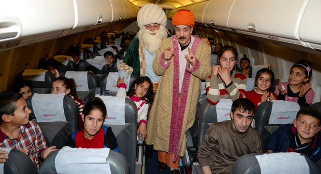 22 – 25 Aralık tarihleri arasında gerçekleşecek gezi kapsamında Hakkârili çocukları Van üzerinden başkent ile buluşturan AnadoluJet, uçuş esnasında çocuklara keyifli dakikalar yaşattı. AnadoluJet Çocuk Tiyatrosu’nun sahneye koyduğu Lambanın Sihri Hezarfen’in Fikri adlı oyundaki Nasrettin Hoca ve Hezarfen’i canlandıran oyuncular da kostümleriyle uçuş süresince çocuklara eşlik etti, onlarla fotoğraf çektirdi.