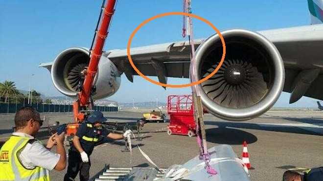 "18 Ağustos günü Emirates'in, Dubai'den Nice'e giden EK 77 sefer sayılı uçağın normal bir şekilde indi, yolcular ile mürettebat güvenli bir şekilde uçağı terketti. İnişin ardından mühendisler, sağ kanattaki bir çıtada bir miktar hasar tespit etti ve uçak bakıma alındı."