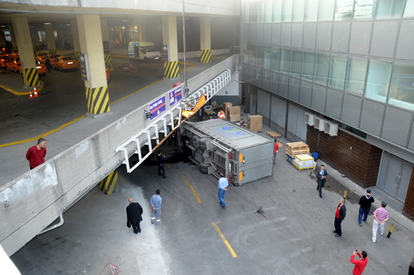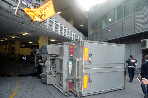 Atatürk Havalimanı'nda saat 16.00 sıralarında meydana gelen kazada malzeme getirdiği öğrenilen 41 AB 912 plakalı kamyonetin sürücüsü, İç Hatlar terminali servis yoluna hızlı girdi. Azami yüksekliği 3 metre 10 santim olan alt geçide takılan kamyonet büyük bir gürültü ile devrildi. Kamyonet sürücüsü kazadan yara almadan kurtuldu.