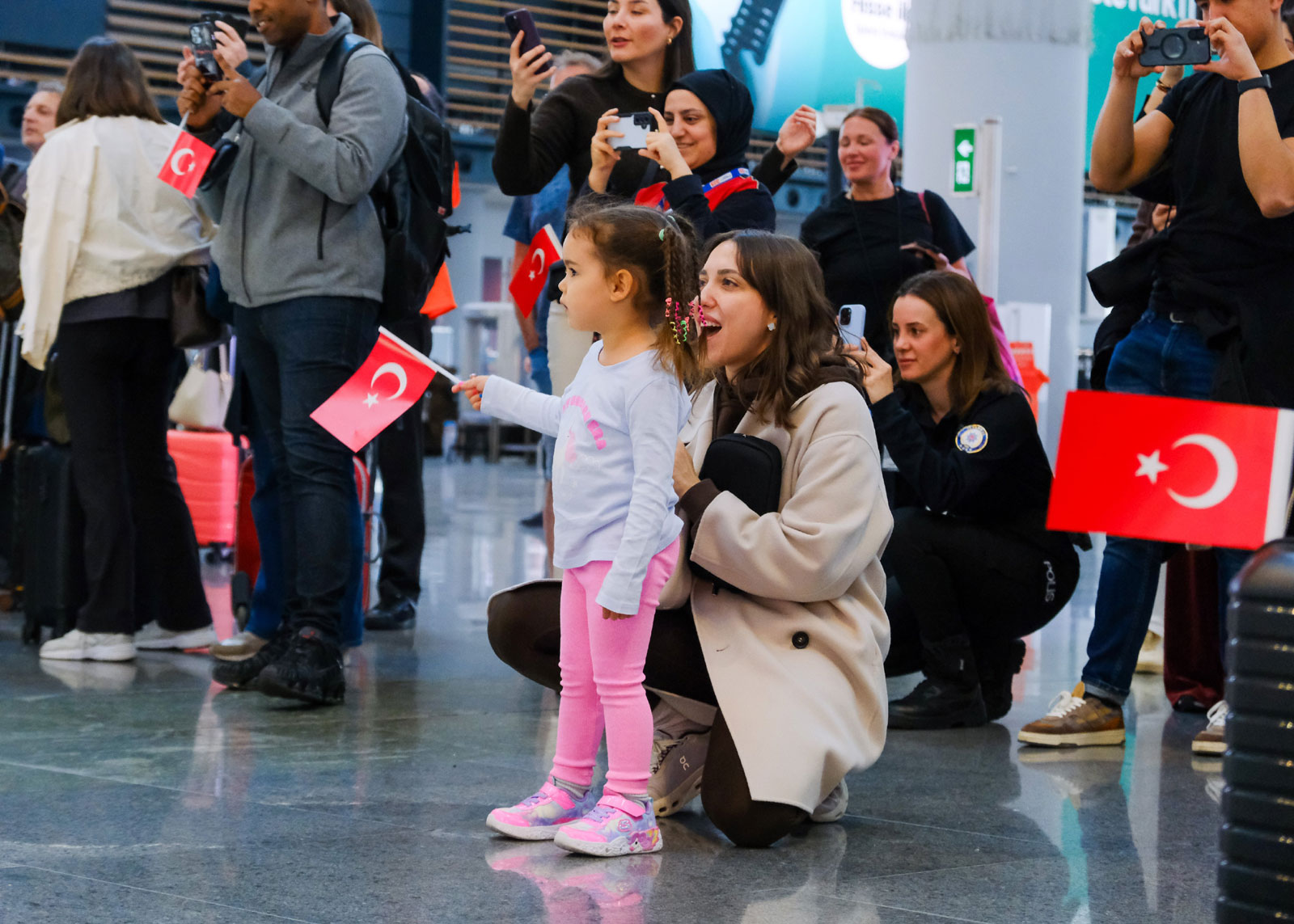 Etkinlik kapsamında çocuklara ve yolculara Türk bayrakları dağıtılırken, terminal adeta kırmızı beyaza büründü. Bando takımının seslendirdiği marşlara yolcular da eşlik ederek havalimanında unutulmaz anlar yaşanmasına neden oldu.