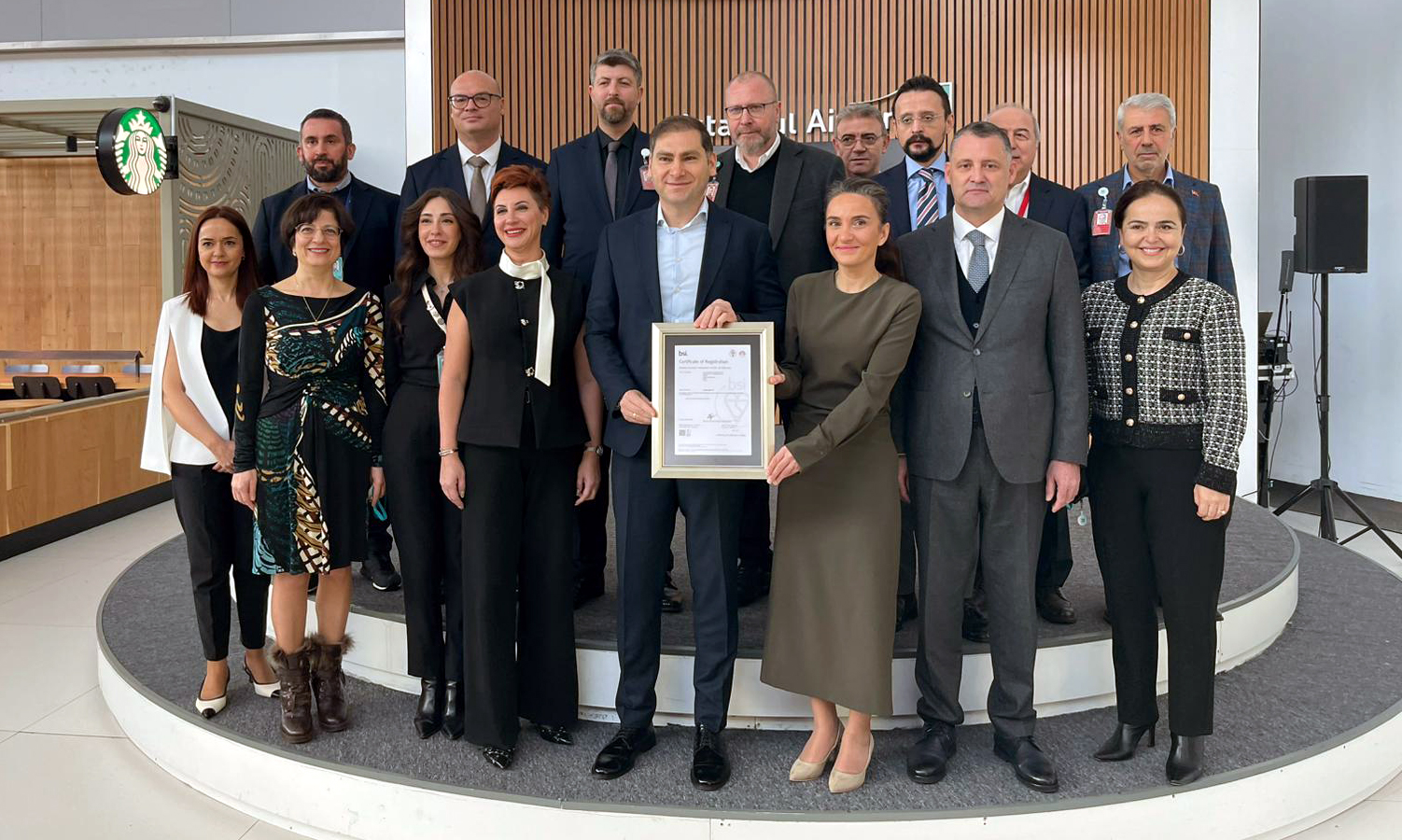 İstanbul Havalimanı’nda düzenlenen sertifika teslim törenine İstanbul Havalimanı Mülki İdare Amiri Doç. Dr. M. İlker Haktankaçmaz, İstanbul Havalimanı İşletmecisi İGA CEO’su Selahattin Bilgen ve diğer davetliler katıldı.