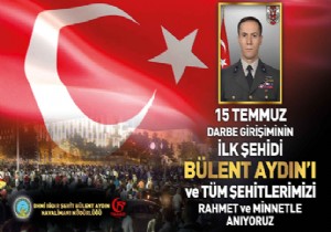 “15 Temmuzun ilk şehidi olarak tarihe geçip milletimizin gönlünde taht kuran Piyade Başçavuş Bülent Aydın’ın adını gururla taşıyan Iğdır Havalimanı'nda aziz şehidimiz için bir anma töreni düzenlendi bugün. Töreni tertipleyen kıymetli arkadaşlarıma, iştirak eden kamu kuruluşu temsilcileri ve vatandaşlarımıza çok teşekkür ediyorum. Aziz şehidimiz Bülent Aydın ve tüm şehitlerimizi bu vesileyle bir kez daha rahmetle anıyor, şanlı gazilerimize kalbî saygılarımı sunuyorum.”