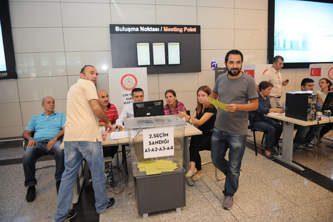 Dış Hatlar Terminali geliş ve gidiş katlarında olmak üzere 2 ayrı noktada şeffaf oy kullanma sandıkları yerleştirildi. Oy kullanma işlemi için kapalı kabinler de hazırlandı. Atatürk Havalimanı'nda oy kullanılacak 16 gün boyunca 300'e yakın görevli 3 vardiya halinde çalışacak. Sandıklarda 24 saat oy kullanılabilecek. Oy kullanma işlemi 10 Ağustos günü seçim bitene kadar devam edecek. Gümrük kapılarında, yurtdışında yaşayan ve yurtdışı seçmen kütüğünde kayıtlı olup, Türk pasaportunu ibraz eden vatandaşlar giriş ve çıkış yaparken oy kullanabilecek.
