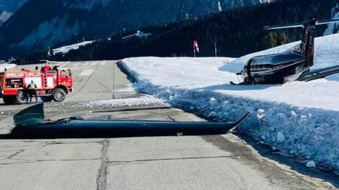 Fransız Alpleri'ndeki Courchevel Havaalanı'na iniş sırasında piste çarpan özel uçağın kanadı kırıldı ve pistten çıktı