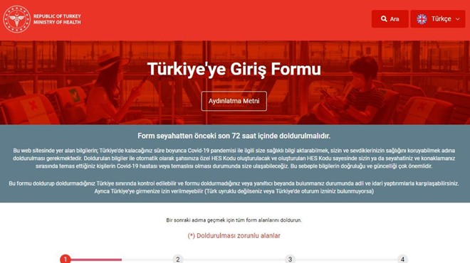Siteye girişte belirtilen belgeleri doldurmak isteyenler için yapılan duyuruda, “Form seyahatten önceki son 72 saat içinde doldurulmalıdır. Bu web sitesinde yer alan bilgilerin; Türkiye'de kalacağınız süre boyunca Covid-19 pandemisi ile ilgili size sağlıklı bilgi aktarabilmek, sizin ve sevdiklerinizin sağlığını koruyabilmek adına doldurulması gerekmektedir. Doldurulan bilgiler ile otomatik olarak şahsınıza özel HES Kodu oluşturulacak ve oluşturulan HES Kodu sayesinde sizin ya da seyahatiniz ve konaklamanız sırasında temas ettiğiniz kişilerin Covid-19 hastası veya temaslısı olması durumunda size ulaşabileceğiz. Bu sebeple bilgilerin doğruluğu ve güncelliği çok önemlidir. Bu formu doldurup doldurmadığınız Türkiye sınırında kontrol edilebilir ve formu doldurmadığınız veya yanıltıcı beyanda bulunmanız durumunda adli ve idari yaptırımlarla karşılaşabilirsiniz. Ayrıca Türkiye’ye girmenize izin verilmeyebilir (Türk uyruklu değilseniz veya Türkiye’de oturum izniniz bulunmuyorsa)” ifdelerine yer veriliyor.