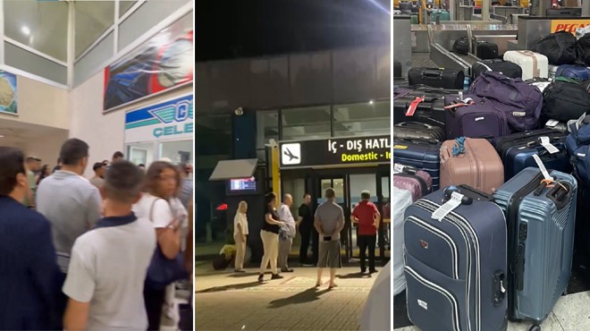 Yolcular, Sabiha Gökçen Havalimanı'nda yığınlar halindeki valizlerin fotoğraf ve görüntülerini sosyal medya hesabından paylaştı.