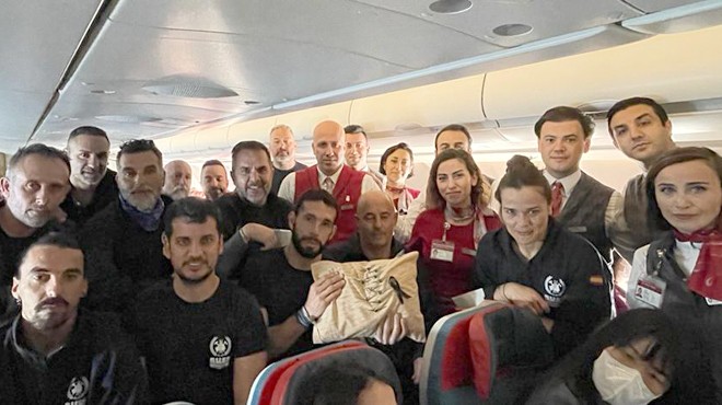 Türkiye'yi sarsan deprem felaketinde arama kurtarma çalışmalarına katılıp ülkelerine dönen İspanyol ekibi, THY uçağında uçuş ekibinin minnet dolu hediyesiyle uğurlandı