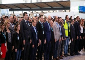 Dış Hatlar Terminali’nin gidiş katında toplanan havalimanı personeli ve yolcular, saatler 09.05’i gösterdiğinde bir dakikalık saygı duruşunda bulundu. Saygı duruşunun akabinde ise İstiklal Marşı okundu. Havalimanında bulunan yerli ve yabancı yolcular için Türkçe ve İngilizce anonslar yapıldı. Pasaport kontrol noktalarındaki polis memurları da bulundukları yerde ayağa kalkarak saygı duruşu ve İstiklal Marşına eşlik etti. O anlarda ise İstanbul Havalimanında hayat edata bir dakikalığına durdu. Törenin ardından yolcuların işlemleri kaldığı ise yerden devam etti.