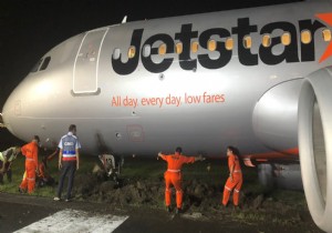 Manila-Tokyo seferini yapacak olan Jetstar Havayolları’na ait Airbus A320 tipi uçak Ninoy Aquino Havalimanı'nda kalkış için hazırlanırken pistten çıkarak toprak zemine saplandı.