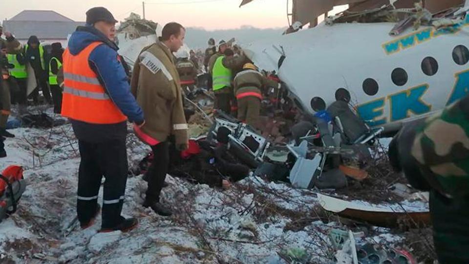 Kazakistan'ın Almatı kentinde düşen yolcu uçağından ilk görüntüler