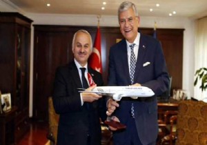 THY Genel Müdürü Temel Kotil, AB Bakanı ve Başmüzakereci Volkan Bozkır’ı makamında ziyaret etti. THY’nin projeleriyle ilgili Bakan Bozkır’ı bilgilendiren Temel Kotil, ayrıca üzerinde “Volkan Bozkır” yazılı bir uçak maketi ve lokum hediye etti. Bakan Bozkır da, Kotil’in ziyaretini ve göğsünü kabartan projeleriyle ilgili memnuniyetini twitter hesabından duyurdu.