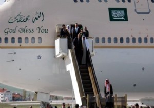 Kral Selman’ın uçağının burnunda "God Bless You" (Allah seni korusun) yazısı dikkat çekti