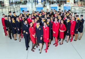 Dünya Kadınlar Gününde Lufthansa grup şirketlerine ait uçaklarla Frankfurt, Münih, Cenova, Viyana ve Brüksel’den ABD’nin New York kentine yapılan 5 uçuşta 63 kadın bir erkek kabin memuru görev aldı.