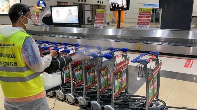 Her iki havalimanın dezenfeksiyon işlemi de insan sağlığını tehdit eden mikroorganizmalara karşı etkili olduğu birden fazla analiz raporu ile belgelenmiş olan yüksek düzey bir dezenfektan ürün kullanılarak yapılıyor. WC’lerde bulunan kapı kolları ile lavabo ve klozetler, terminal geneli oturma grupları, merdiven tırabzanları, yürüyen merdiven bantları ve asansör tuşları hemen hemen her saat başı; güvenlik kontrol noktalarında bulunan sepetler ise her kullanımdan sonra silme yöntemi ile dezenfekte ediliyor. Başta terminal giriş ve çıkışlarında bulunan güvenlik noktaları ile lavabo, mutfak, yemekhane, ofis, ibadethane, asansör, merdiven, bagaj alım bandı, çöp tenekesi, vb. alanlar ile objeler olmak üzere, havalimanı personeli ile yolcu ve ziyaretçilerin temas ettiği tüm yüzeyler ise düzenli aralıklar ile ULV cihazları kullanılarak dezenfekte ediliyor. ULV cihazı kullanılarak yapılan dezenfeksiyon işlemi sayesinde dezenfektanın zeminden tavana dek tüm alana nüfuz etmesi sağlanıyor.
