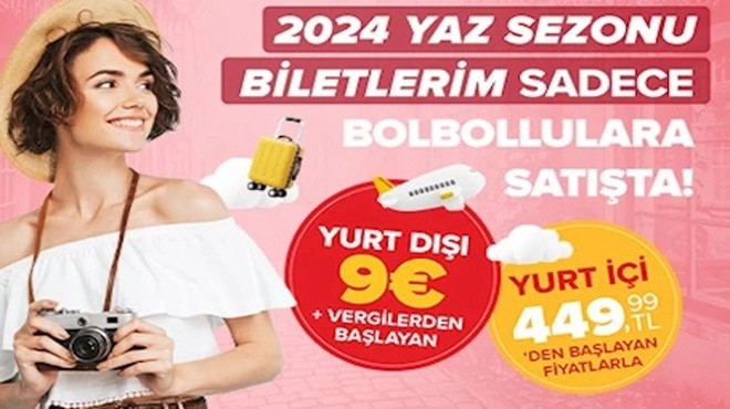 Pegasus Hava Yolları, 18-19 Ekim 2023 tarihleri arasında alınan 31 Mart 2024-26 Ekim 2024 uçuş tarihli seçili yurt dışı biletleri 9 euro artı vergilerle, yurt içi biletleri 449,99 TL’den ve Kıbrıs biletleri 39,99 USD’den başlayan fiyatlarla sadece BolBol üyesi yolcularına satışa sundu.