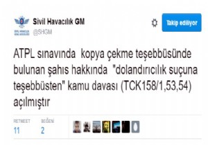 Pilot olmak için ATPL sınavına giren bir aday kopya çekmeye kalkışınca yakalandı. Sivil Havacılık Genel Müdürlüğü resmi internet sitesinde yapılan açıklamada, pilot olabilmek için aralarında uçak motor sistemleri, elektronik, meteoroloji, haberleşme, performans gibi önemli konularda oluşan bir sınav yapıldı. Sınavda adaylardan biri kopya çekmeye teşebbüs ederken tespit edildi.