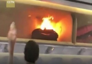 China Southern Havayolları uçağında baş üstü dolapta bulunan bir power bank, aniden alev alınca uçakta korku ve panik dolu yaşandı