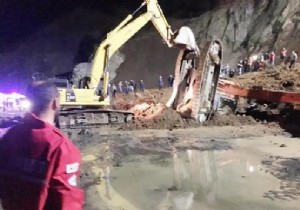 Rize-Artvin Havalimanı inşaatına dolgu malzemesinin alındığı taş ocağında heyelan meydana geldi, toprak altında kalan operatör hayatını kaybetti