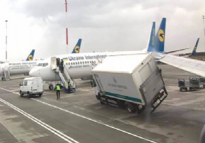 Ukraine International Havayolları uçağının sağ kanadı o sırada önünden geçmekte olan ikram kamyonuna çarptı