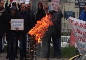 Hak sahipleri, geçtiğimiz pazar günü teslim edilmeyen evlerini maketlerini yaktı.