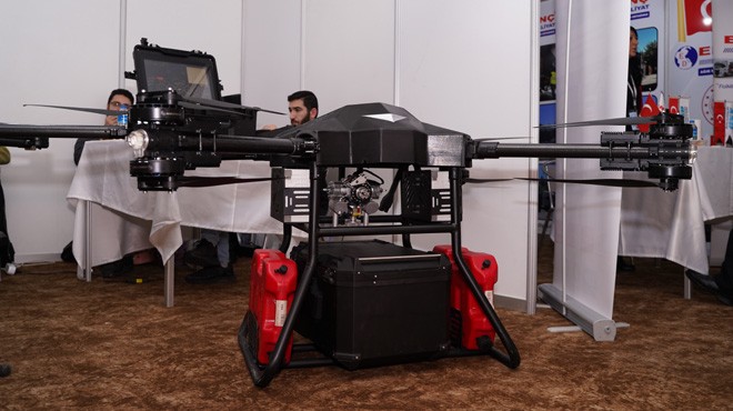 Airaks Teknoloji DLSS’te 60 litre faydalı yük taşıma kapasiteli hibrit kargo drone projesini tanıttı. Proje, askeri personelin su, gıda, tıbbi malzeme ve mühimmat ihtiyaçlarına çözüm sunuyor. Faydalı yük ile 2.5 saat uçuş sağlayan sistem 150 km de menzile sahip. Sistem benzinli motordan elde ettiği mekanik enerjiyi alternatör vasıtasıyla elektrik enerjisine çevirerek bataryaları şarj edebiliyor ve havayı sıkıştırma özelliğiyle de 5 km irtifaya kadar çıkabiliyor. Airaks Teknoloji yerlileştirdiği motorlar ve alternatörle yüksek yerlilik oranı elde etmiş olup, faydalı yük kapasitesini ve uçuş sürelerini arttırmak için Ar-Ge faaliyetlerine devam ediyor.